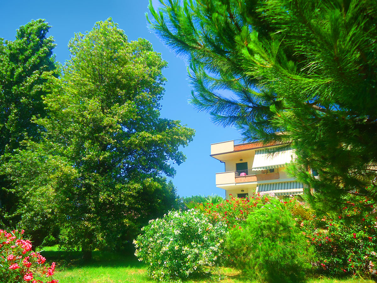 Splendida Residenza rifinita nei minimi dettagli, ideale per famiglie o coppie. Situata in posizione esclusiva, sulla pineta fronte mare, raggiungibile a piedi, offre comfort e relax per una permanenza indimenticabile.